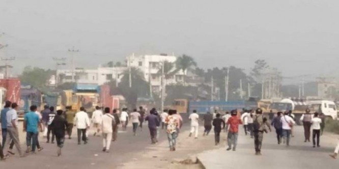 প্রত্যক্ষদর্শীরা জানান, সকালে পুলিশ পাহারায় কিছু যানবাহন পার করার সময় পেছন থেকে কয়েকটি ট্রাক ও কাভার্ডভ্যানের গ্লাস ভাঙচুর করে অবরোধকারীরা। পরে পুলিশ পরিস্থিতি নিয়ন্ত্রণে আনতে গুলি ও টিয়ার শেল ছুড়লে অবরোধকারীরা পাল্টা জবাব দেয়। এক পর্যায়ে পুলিশ গুলি করলে স্থানীয় বিএনপি নেতা মাহবুবর রহমান ওরফে মাহবুব পায়ে গুলিবিদ্ধ হন।
