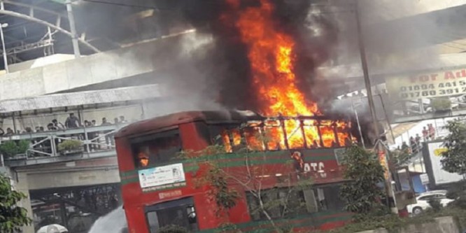 মিরপুর-১০ এর গোলচত্বরে বিআরটিসি বাসে আগুন