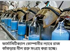 জটিল অস্ত্রাপচারের যেমন কিডনী প্রতিস্থাপনের সময় রক্ত ক্ষরণ বন্ধ করতে ও জীবানু মুক্ত করতে হর্স সু্ ক্র্যাবের রক্ত হতে উৎপাদিত ওষুধ ব্যবহার করতে হয়।দামেও বহুমূল্য। প্রতি গ্যালন নীল রক্তের দাম প্রায় ৬০ হাজার মার্কিন ডলার।ঔষধ কোম্পানি গুলোর চাহিদা মেটাতে বিশ্বব্যাপী অনিয়ন্ত্রিত আহরনের ফলে বিশ্বের বিভিন্ন দেশে এই প্রাণীটির অস্তিত্ব হুমকির সম্মুখীন।