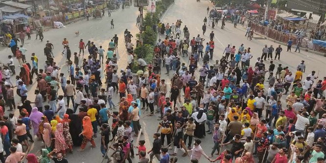 রাজধানীর মিরপুর ১০ নম্বর এলাকায় বেতন বৃদ্ধির দাবিতে গার্মেন্ট শ্রমিকরা অবরোধ করেছে। এ সময় তারা গতকাল মঙ্গলবারের আন্দোলনে হামলার বিচারের দাবি জানিয়েছেন।