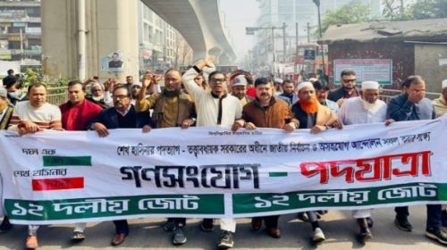 আগামী ৭ জানুয়ারির নির্বাচন বর্জনের আহ্বান জানিয়ে সারাদেশে গণকারফিউ ঘোষণা করেছে ১২ দলীয় জোট। শুক্রবার (৫ জানুয়ারি) দুপুরে প্রেসক্লাব ও পল্টন এলাকায় নির্বাচন বাতিল, শেখ হাসিনার পদত্যাগ ও অসহযোগ আন্দোলন…