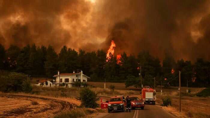 গ্রিসে ভয়াবহ দাবানলে বাড়ি ঘর ছেড়ে পালাচ্ছেন স্থানীয় জনগন।