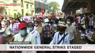 মিয়ানমারে দেশব্যাপী ধর্মঘটে অংশ নিচ্ছেন লক্ষ্যা‌ধিক বিক্ষোভকারী।