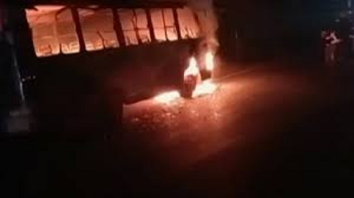 ডেমরায় বাসে আগুন, ভেতরে ঘুমন্ত হেল্পারের মৃত্যু।