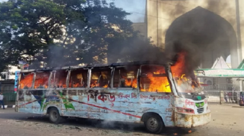 বায়তুল মোকাররমে চলন্ত বাসে আগুন দিল দুর্বৃত্তরা।
