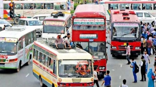 রাজধানী ঢাকায় গণপরিবহন চলাচল প্রায় বন্ধ